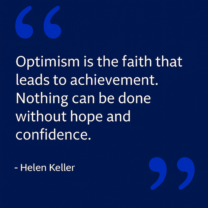 If you’ve ever read anything about Helen Keller, you know she lived one of the most incredible lives you’ll ever come across. Born deaf and blind, she still became an author, speaker, and a voice of real strength and hope. When someone like that talks about optimism and confidence, it lands differently. She earned every bit of the perspective behind this week’s quote.